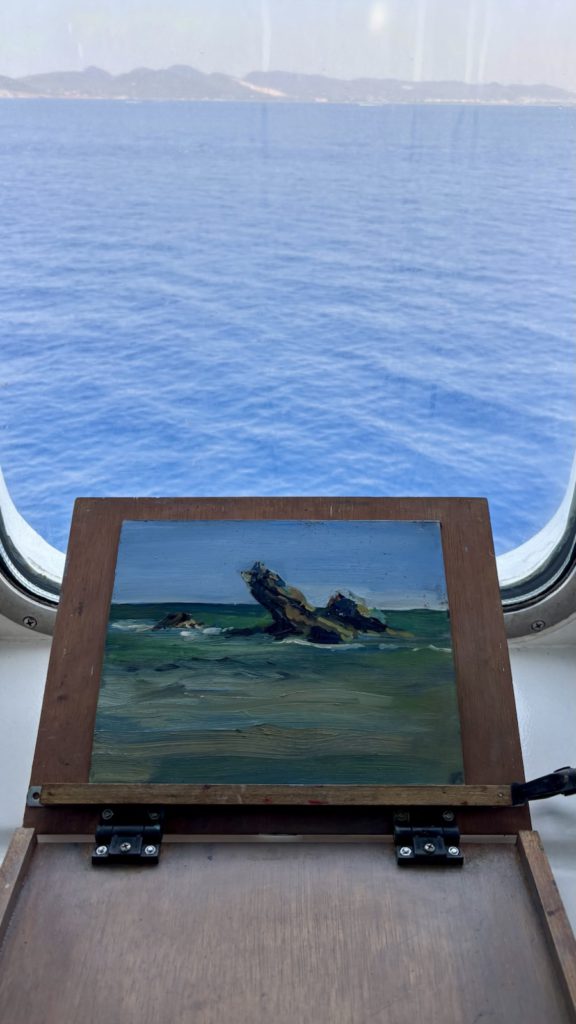 When I began this painting in Ibiza, I wished I didn’t leave my beach umbrella in Valencia before boarding the early morning flight to Ibiza.