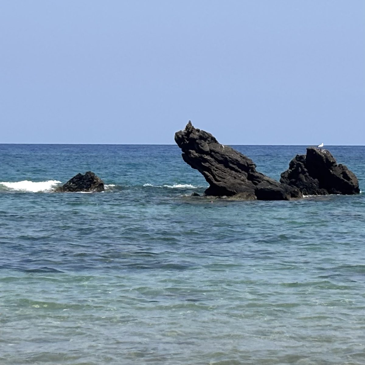 The color of the ocean really grabbed my attention as they were so blue, green, and yellow all over. Then when the waves moved just right by the rocks, all the colors would dance around the rocks that I was painting.